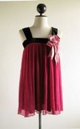 ช่วงตัวเป็นผ้าไหมชีฟองเทียม สีชมพูเข้มเนื้อนิ่ม มีประกายวิ้งเล็กน้อยที่เนื้อผ้า