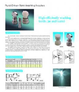 Low capacity stationary tank washing nozzles to effectively clean the interior of small distribution or process vessels from up to 0.6 m to 0.9 m.