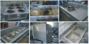 1.เตาจีนสแตนเลส 2 หัว 75 x 195 x 75 ซม. มีที่วางของ 75 x 57 ซม. มีพนังพิง 2 ตัว ราคาซื้อตัวละ 35,000 บาท