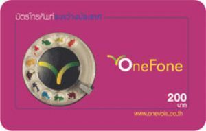 Onefone คือ บัตรบริการบัตรโทรศัพท์ทางไกลระหว่างประเทศ ใช้งานได้โดยตรงจากโทรศัพท์เคลื่อนที่ทุกระบบ และโทรศัพท์บ้าน สัญญาณเสียงชัดเจน คุณภาพดี ราคาถูกกว่า ใช้งานได้ทันที มีระบบตอบรับอัตโนมัติ พร้อมทั้งบริการเสริมมากมาย ภายใต้บริษัท OneVois Communication Co.,Ltd