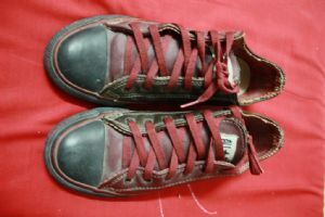 รองเท้า CONVERSE หนังสองสี สีแดงและสีออกทองๆ ราคา 1100 บาท