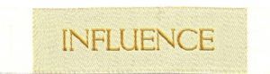 "influence"เป็นชื่อที่เราทำลงไปในป้ายคอเสื้อ(ความหมายว่า อิทธิพล)