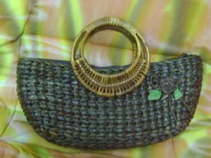 ลักษณะพิเศษคือ เป็นกระเป๋าสานที่ทำจากผักตบชวา ด้านในมีผ้าซับในสีน้ำตาล ปากกระเป๋ามีซิปรูด หนา 6ซม. สูง 18 ซม. กว้างปากกระเป๋า 42 ซม.