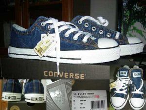 ต้องการขายรองเท้าผ้าใบยี่ห้อconverse ซื้อมาจาก secon แล้วใส่ไม่ได้ของใหม่100%ขายพร้อมกล่องรับรองถูกแน่นอน ขาย750 B ขายขาดทุนเลย มี 1คู่เท่านั้น เป็นแบบผ้ายีนส์