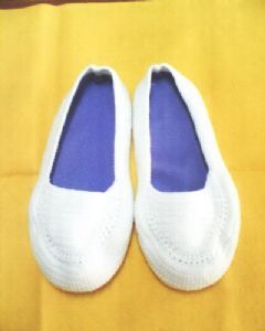 รองเท้า ถักด้วยมือวัสดุคือไหมพรม ใส่นุ่มสบายเท้า ด้านในบุด้วยฟองน้ำอย่างดี ทำความสะอาดเพียงแช่ผงซักฟอก ซักด้วยมือหรือซักด้วยเครื่องซักผ้าตั้งโปรแกรมเบาที่สุด (หากเกิดการหลุดของปมไหมให้ใช้ด้ายเย็บส่วนที่หลุด ห้ามดึงไหมเพราะจะยิ่งทำให้หลุดมากขึ้น)