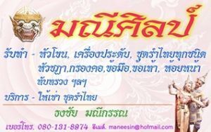 โดยช่างที่ชำนาญงานและปราณีต งานฝีมือทุกชนิด รับทำหัวโขนขนาดจิ๋ว, หัวชฎา, กรองคอ, ข้อมือ, ข้อเท้า, ห้อยหน้า, ทับทรวง ฯลฯ