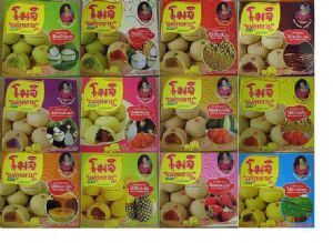 1. ขนมโมจิ มีทั้งหมด 12 รส 12 ใส้ มี 9 ลูกต่อกล่อง น้ำหนัก 120 กรัมต่อกล่อง มีอายุ 20 วัน ราคาขายหน้าร้าน 3 กล่อง 100 บาท สั่งขั้นต่ำ 100 กล่อง
