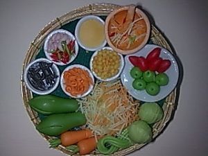 อาหารไทยจิ๋ว ปั้นจากดินไทย โดยเฉพาะ ชุดส้มตำ เหมาะแก่การนำไปเป็นของฝากที่ระลึกเพื่อให้คนต่างชาติรูถึงอาหารยอดนิยมของ ไทย ราคาถูก