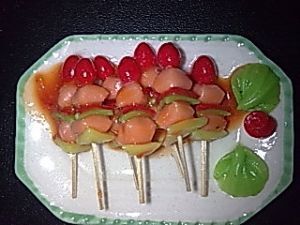 อาหารจิ๋วบนภาชนะจานกระเบื้องจาก จ.ลำปาง ขนาดเล็ก (ประมาณ 3 cm)มีอาหารให้เลือกหลายชนิดทั้งลูกชิ้นปิ้ง บาบีคิว ปลาจาระเม็ดนึ่งซีอิ๊วเป็นต้น