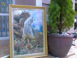ขายภาพศิลปะ ภาพม้า- เทคนิคสีอคลีลิค ภาพดอกบัว-เทคนิคสีน้ำมัน ภาพกล้วย-เทคนิคสีน้ำ ทุกภาพขายในราคา2,500 บาท