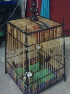 ขายกรงนกหัวจุก ทรงสปอร์ตทำจากไม้ชิงชัน 17 ซี่ สวยครับ