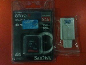 ขาย SD Card ยี่ห้อ Sandisk UltraII 8GB. Class4 15mb/s. ของใหม่ยังไม่ได้แกะกล่อง ** แถม Usb Reader ของ Panasonic ด้วยครับ