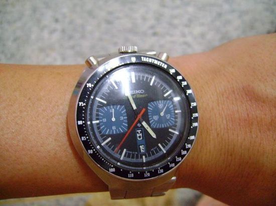 สุดยอดนาฬิกาจับเวลา chonograph ของ seiko ต้องนี่เลยครับ seikoมดดำหรือ Seiko Bull Head Chronograph 1970s นาฬิกาจับเวลาอมตะยอดนิยมตลอดกาลของไซโก้ ฝรั่งเรียก Bull Head หรือ Mickey Mouse แต่คนไทยเรียก มดดำ มดแดง ลักษณะเด่นของรุ่นนี้คือ ปุ่มจับเวลา และเม็ดมะยมอยู่ด้านบนตัวเรือน ในจำนวนนาฬิกาจับเวลาของไซโก้รุ่นนี้ถือว่านิยมที่สุดครับ
