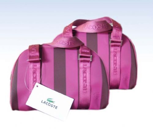 ขายกระเป๋าถือLacosteสีม่วงลายทางสลับชมพู