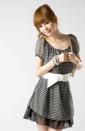 ราย ละเอียดสินค้า : {สินค้า พร้อมส่ง} แซค/เดรสคอกลมแขนสั้น ผ้า Cotton+Spendex เนื้อดี ส่วนบนแต่งลายทางขาว-ดำ ส่วนล่างกระโปรงดำแต่งกระดุมมีกระเป๋า 2 ข้าง ใส่สบาย ๆ ค่ะ สีดำ