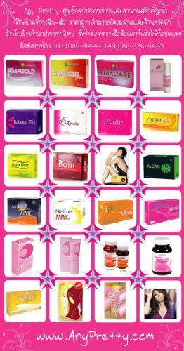 Vite Secret,Power 3,Boo-Benlarge,Power 3 Vanish Cellu,femacare Radiance,femacare Radiance Serum,Femagold HiVite,Femagold Plus,Femacare I-Brite,Femacare Vitasome,Femacare Beaute,Femacare Beaute,Vite Bodi ,Rakbody Tea Time,Promen Regow Plus ,Profimin Vite Plus,Profimin Vite Nice,Celluvite,Marine Advance,Detrim caclus Plus,Detrim X-Tra,Cindy Kidney Bean Plus,Profimin Harriss,Ya Mio,Mio Breast Cream,Vistra Vision,Vistra Calplex Plus,Vistra Gluta Complex,Vistra Coenzyme Q10 Plus,Vistra Acerola Cherry 1000 mg ,Vistra L-Carnitine,Vistra Grape Seed,Anta Fadt,Bain,Balance Mix,Boncal Plus,Bain Syrup,Clearasoft Acne Gel,Clearasoft Cleansing Gel ,Clearasoft Pink,EPO,Exlite,E-Zywite,Figger Plus,Fish Oil 1000 mg ,HI-Q10,Hi-Srim,Klean,Nite Time,Nite Time Maxs,Ogamix,Provin,Symphony Gold,Symphony Extra,X-Cellence,