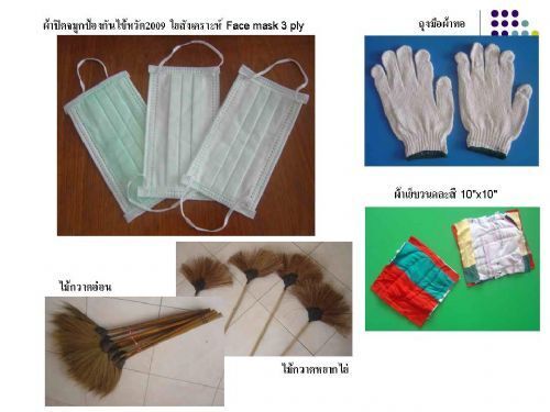 ผ้าปิดจมูกป้องกันไข้หวัด2009, ถุงมือผ้าทอ, เศษผ้าเย็บวนคละสี ไม้กวาดอ่อน