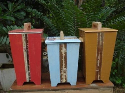 ถังขยะไม้เก่า ทำจากฝาบ้านเก่า สีสันแปลกตาด้วยรูปลักษณ์ที่สวยงามเป็นธรรมชาติของสีไม้เก่า เหมาะกับการตกแต่งบ้าน หรือ ร้านค้า รีสอร์ท อาคารสำนักงาน เป็นต้น
