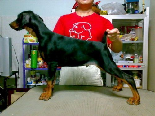 รับจองลูกโดเบอร์แมน (DOBERMANN)สายเยอรมัน พ่อนอก แม่ไทยแชมป์และแชมป์ถ้วยประทานต่อสู้ป้องกัน คอกสุนัขที่เลี้ยงและเพาะพันธุ์โดยนายสัตวแพทย์ เลี้ยงโดเบอร์แมนเพียงสายพันธุ์เดียวตั้งแต่ปี 2535 � จำไว้ให้ขึ้นใจเชียวครับว่า ถ้าต้องการซื้อสุนัขโดเบอร์แมนต้องดู 2 อย่าง(กรุณาใช้ตาอย่าใช้หู)� � ๑.พ่อแม่พันธุ์ต้องสั่งกัด สั่งปล่อยได้ เพื่อการันตีความสามารถในการใช้งาน� � ๒.สุนัข ที่เขาครอบครองอยู่ โดยเฉพาะตัวเขาที่เพาะพันธุ์ขึ้นต้องเคยได้รับรางวัลอย่างน้อย� Reserve best in group จากงาน Thailand international� dog show� หรืองานที่สมาคมพัฒนาพันธุ์สุนัขแห่งประเทศไทยรับรอง C.C.� เพื่อการันตีด้านความงามตามมาตรฐานสายพันธุ์� ทั้ง 2 อย่างนี้ถ่ายทอดทางพันธุกรรมแน่นอนครับ พ่อแม่เป็นหมูย่อมไม่ออกลูกเป็นเสือครับ ลูกสุนัขกำหนดคลอด ส.ค.53 รายละเอียดดูที่ www.thaidoberman.com