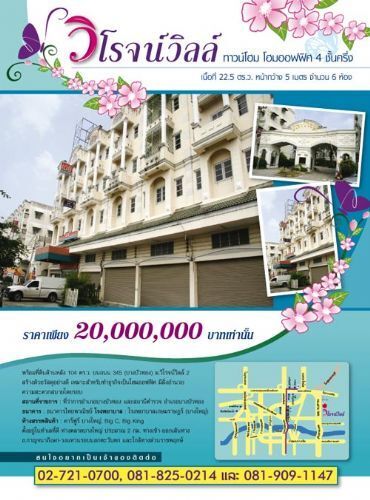วิโรจน์วิลล์ ทาวน์โฮม โฮมออฟฟิศ 4 ชั้นครึ่ง