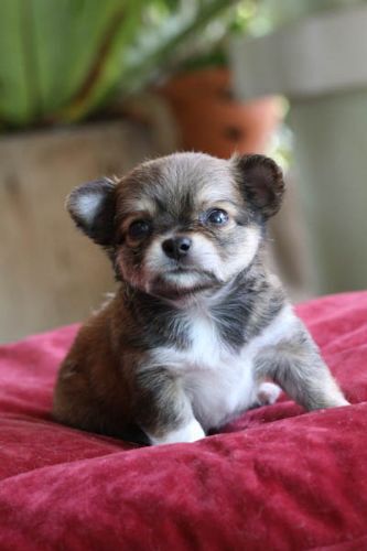 ชิวาวาขนยาว สีน้ำตาล น่ารัก ขี้เล่น วัยกำลังซน