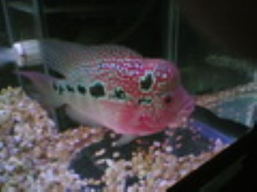ขายปลาหมอสีราคาถูกครับ พันธุ์ฟลาวเวอร์ฮอร์น สีแดง โหนกกลาง ครีบยาว เน้นมุกชัดเจน นิสัยร่าเริง