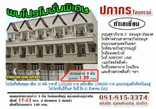 โปรโมชั่นพิเศษสุด เพียง 10 หลัง (สุขาภิบาล 2 อ่อนนุช ประเวศ)