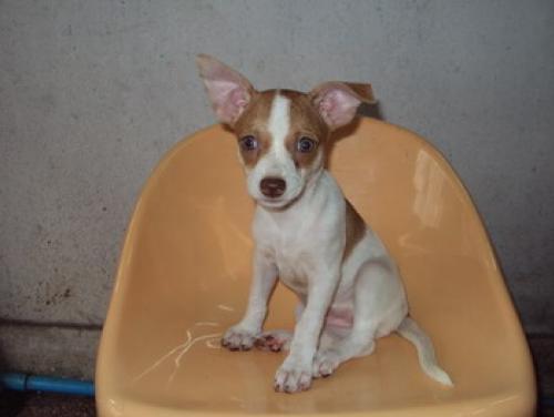 ขายลูกชิวาวาขนสั้นเพศเมีย แฟนซีสีขาวนำตาลและสีนำตาล มีใบเพ็ด
