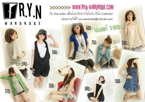 รับ Pre-order สินค้านำเข้าจากไต้หวันยี่ห้อ Catworld เสื้อผ้า กระเป๋า รองเท้า แฟ่ชั่นน่ารักๆ หลากหลายสไตล์ สินค้าเป็นของแท้ทุกชิ้น ลองแวะชมได้เลยค่ะที่ www.ryn-wardrobe.com หรือติดต่อทาง Email ที่ [email protected]