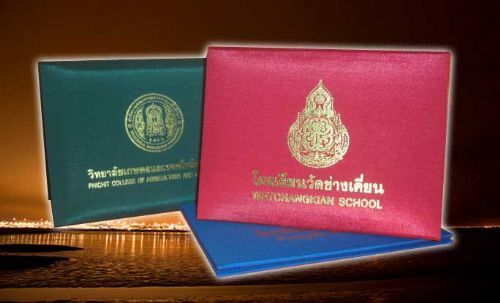 เราคือผู้ผลิต ปกผ้าไหม-พิมพ์ทอง สำหรับแนบ ใบประกาศนียบัตร ใบปริญญาบัตร ใบเกียรติบัตร ใบวุฒิบัตร ฯลฯ ผลิตโดยทีมงานช่างฝีมือที่มีประสบการณ์ ความชำนาญ ผลงานเป็นที่ยอมรับของสถาบันการศึกษา หน่วยงาน ทั้งภาครัฐและเอกชน