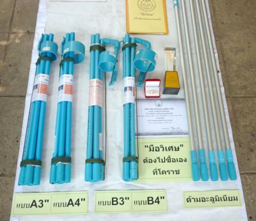 ส่งในกล่องพัสดุ จ(E) เป็นชุดห่อติดด้าม (40 ซม.) ร้อยเชือก (4.50 เมตร) พร้อมใช้งาน