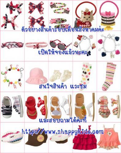 2HappyKids นำเข้าGymboree จาก USA มีหลายอย่างค่ะ เครื่องประดับผม กิ๊บเกลียว(สุด Hot) โบ ที่มัดผม ที่คาดผม แว่นตา นาฬิกา สำหรับเบบี้ สาวน้อย หนุ่มน้อย รวมถึงเสื้อผ้าน่ารักๆด้วยค่ะ