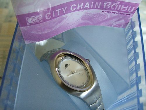 ขายนาฬิกาข้อมือผู้หญิงสายเหล็กเสีเงิน"adidas" ของใหม่ราคาถูก