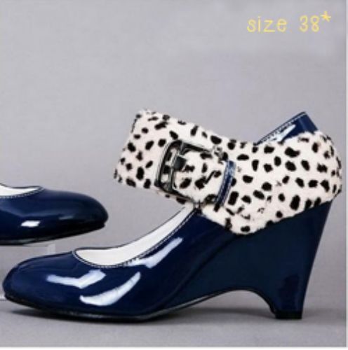 รองเท้า ยี่ห้อ kvoll จากเกาหลี หนังแก้วสีน้ำเงินเข้ม ส้นเตารีด