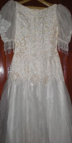 ชุดวิวาห์มือหนึ่งเหมาะกับเจ้าวาวร่างเล็กบางรอบอก30นิ้วเอว24นิ้วสวยมากปัก เลื่อมมุกผ้าแก้วพริ้วราคาถูกค่ะ