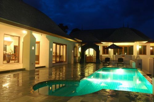 Bali-Lanna-style estate overlooking mountains and rice fields in the beautiful Mae Rim Valley. This recently completed custom designed home sits on a secluded 10 rai (16k square meter) plot only minutes from downtown Chiang Mai. This property is for those wishing privacy and the finest architecture and living elements available in the region.