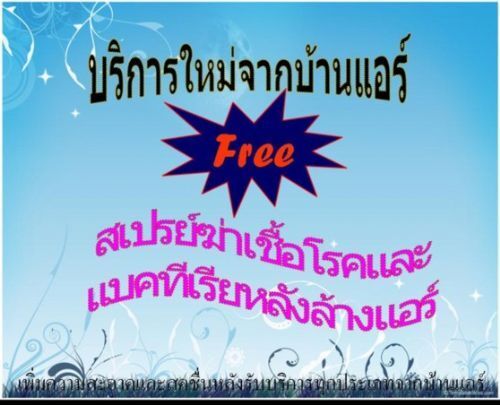 บริการใหม่จากบ้านแอร์ สเปร์ยฆ่าเชื้อโรคและแบคทีเรีย กำจัดกลิ่นอับ ให้ความสดชื่น ทุกครั้งที่รับบริการทุกประภทจากบ้านแอร์ ไม่ว่าจะเป็น ซ่อม-ย้าย-ล้าง-ติดตั้ง