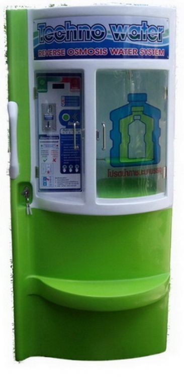 ตู้ น้ำดื่มหยอดเหรียญ TECHNO WATER ผลิตน้ำดื่มด้วยระบบรีเวอร์สออสโมซีส ( RO. ) ด้วยเทคโนโลยีการผลิตน้ำดื่มที่ทันสมัยที่สุด ที่ทั่วโลกให้การยอมรับในคุณภาพ และเครื่องฆ่าเชื้อด้วย Ozone ทำงานแบบอัตโนมัติ กำหนดปริมาตรการจ่ายน้ำด้วยระบบดิจิตอล จึงได้ปริมาณน้ำที่เที่ยงตรงและแม่นยำกว่าระบบอื่น อีกทั้งตัวตู้ยังออกแบบมาให้ดูสวยงาม ทันสมัย สะดุดตาลูกค้าและผู้พบเห็น