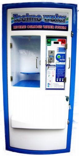 ตู้ น้ำดื่มหยอดเหรียญ TECHNO WATER ผลิตน้ำดื่มด้วยระบบรีเวอร์สออสโมซีส ( RO. ) ด้วยเทคโนโลยีการผลิตน้ำดื่มที่ทันสมัยที่สุด ที่ทั่วโลกให้การยอมรับในคุณภาพ และเครื่องฆ่าเชื้อด้วย Ozone ทำงานแบบอัตโนมัติ กำหนดปริมาตรการจ่ายน้ำด้วยระบบดิจิตอล จึงได้ปริมาณน้ำที่เที่ยงตรงและแม่นยำกว่าระบบอื่น อีกทั้งตัวตู้ยังออกแบบมาให้ดูสวยงาม ทันสมัย สะดุดตาลูกค้าและผู้พบเห็น
