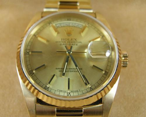 ROLEX รุ่น 18038 เรือนเวลาโดดเด่นกับความเป็นหนึ่งของทองคำทั้งตัวเรือนและสาย คุณภาพการทำงานของกลไกอัตโนมัติที่เที่ยงตรงระดับเกียรติบัตรโครโนมิเตอร์ แสดงหน้าต่างวันในสัปดาห์ตำแหน่ง 12 นาฬิกา และวันที่ตำแหน่ง 3 นาฬิกา� KING SIZE� ทอง 18 เค สวิสแท้ทั้งเรือน สภาพสวยผ่านการใช้งานน้อย ซื้อเก็บมีกล่องพร้อมใบเซอร์ฯ� 285,000 บาท