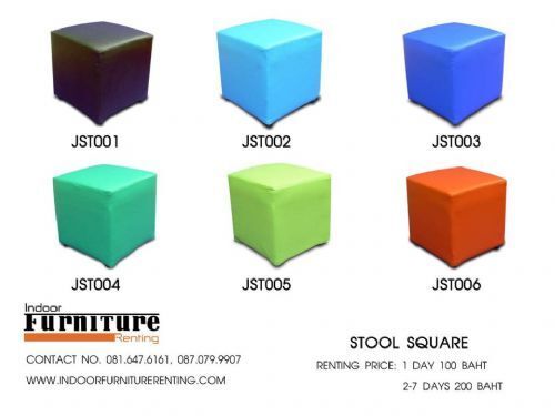 ให้เช่าเก้าอี้สตูลูกเต๋า ขนาด 40x40x40 ซม. สีขาว สีแดง สีดำ สีเขียว