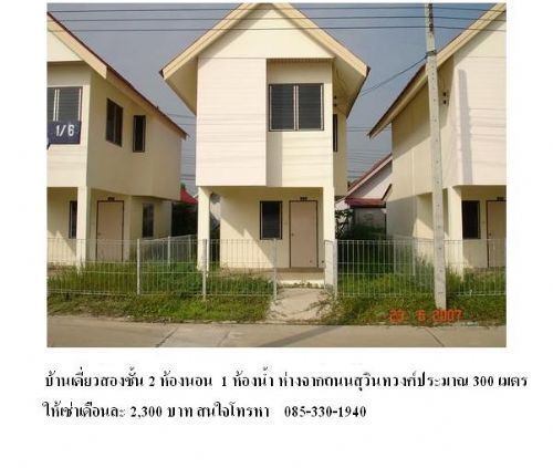 มีบ้านเดี่ยว2ชั้น 2ห้องนอน 1 ห้องน้ำ ห่างจากถนนสุวินทวงศ์ประม าณ 300 เมตรให้เช่าเดือนละ 2,000บาท น้ำไฟใช้มิเตอร์ของรัฐอยู่ในโครงการใช้ไม่เกินหน่วยที่รัฐให้ไว้ไม่ต้องจ่าย