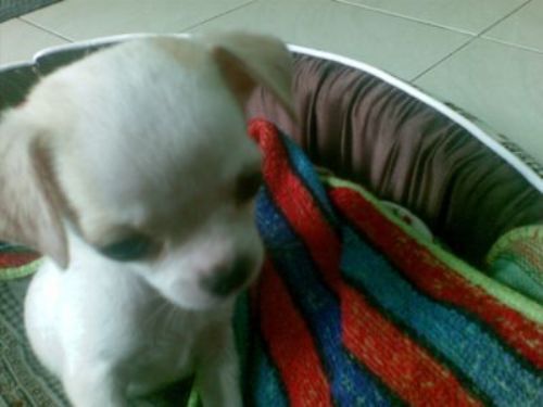ขายน้องชิวาวา อายุ 2 เดือน ค่ะ สีขาวเพศผู้ขนสั้น มีมาร์คที่หู ราคา 8,000 บาท(ราคานี้รวมกรงที่พับได้ และที่นอนน้องเค้าด้วยค่ะ)