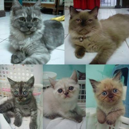 ขายแมวเปอร์เซีย อายุ 1 เดือนกว่า ๆ มีทั้งหมด 5 ตัว ตัวเมีย 1 ตัวสีขาวครีม ที่เหลือ 4 ตัวเป็นตัวผู้ มีสีดำ สีเทาลาย สีน้ำตลาดแบบวิเชียรมาศ 2 ตัว ราคา 1,500.- บาท ต่อรองได้น่ะค่ะ จากที่เห็นในรูป สองตัวบน เป็นพี่มัน ครอกเดียวกัน ไม่ได้ขายน่ะค่ะ 2 ตัวบท เอามาโชว์เป็นตัวอย่าง ตอนนี้อายุ 7 เดือน ส่วนสามตัวล่างนั้นคือที่ขายนะค่ะ