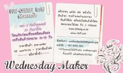 | ติดต่อ: | wednesday shop | อีเมล์: | |