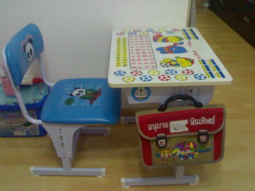 ขายโต๊ะเขียนหนังสือเด็ก เป็นโต๊ะเหล็ก สามารถปรับระดับได้ รับน้ำหนักได้ถึง 50โล(อายุเด็ก 2-10ปี) มีช่องใต้โต๊ะไว้ไส่หนังสือ ด้านข้างเเขวนกะเป๋าได้มีสีเเดง เเละ