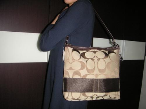กระเป๋า Coach Signature Stripe Convertible Shoulder Bag Tote/ Khaki ของแท้ พร้อมส่ง!!! 5,890 บาท รายละเอียด :