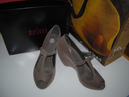รองเท้าMellissไซส์ 38 เป็นผ้ากำมะหยี่สีเทาค่ะ ข้างในบุผ้าพื้นรองเท้าไม่แข็งรอบรับการเดินค่ะ