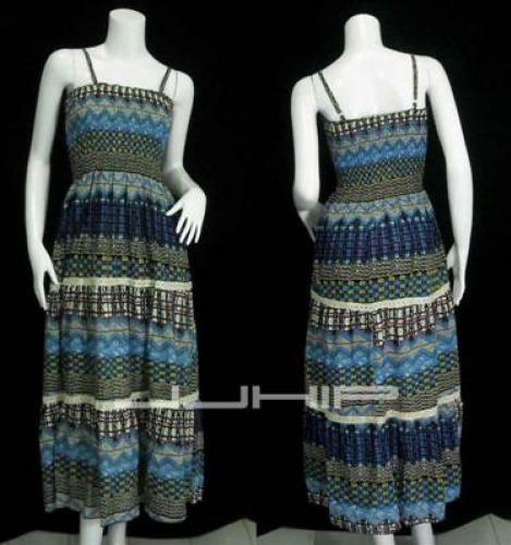 ชุดยาวสายเดี่ยว สม็อคช่วงอกต่อใต้อกลงมาเป็นกระโปรงทำเป็นชั้นๆต่อด้วยลูกไม้ผ้า ใช้ผ้าป่านเกาหลี