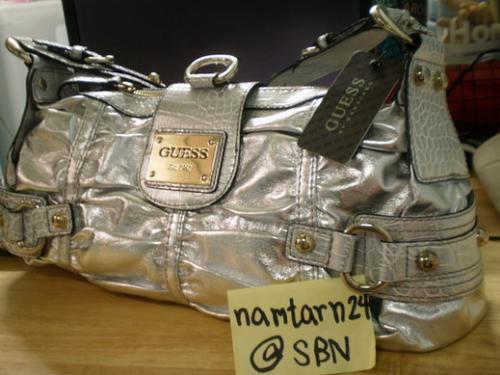 1.ขายกระเป๋าสะพาย GUESS สีเงิน Brond สินค้าของแท้ 100% มีป้ายห้อย สินค้าใหม่ไม่เคยใช้ค่ะ พี่ซื้อมาฝากจาก USA แต่ไม่ชอบ ขอนำมาขายราคาถูกนะคะ ที่shop ขาย 95$ ยังไม่รวมภาษีค่ะ